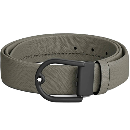 Кожаный ремень 35 мм из кожи серого цвета, пряжка в форме подковы от магазина премиальных ручек Premium Pens в Сочи.